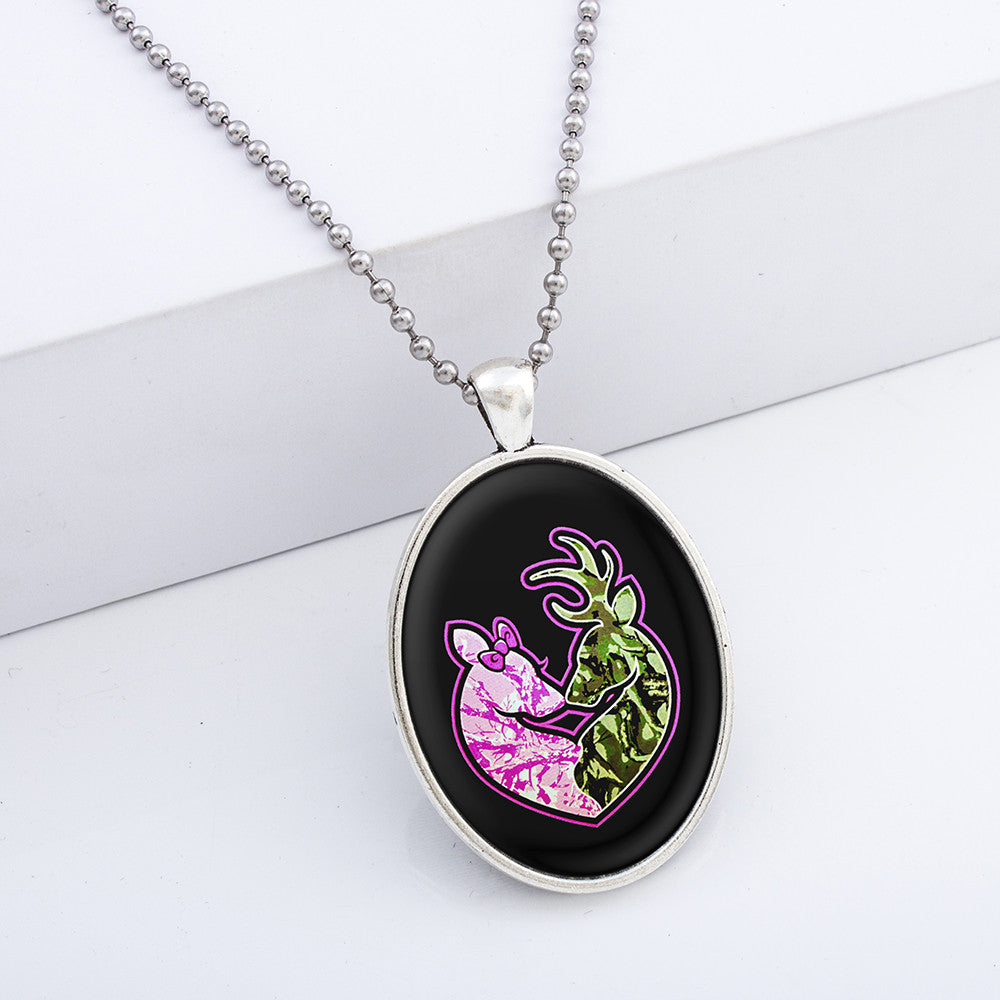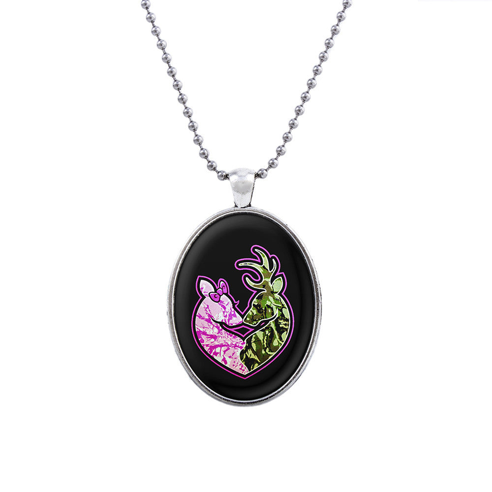 Super cute Buck and Doe emblem in the shape of a heart overlaid on an oval pendant. This item is great as an accessory for yourself! And hey fellas....this makes a great gift for your favorite country girl. :)