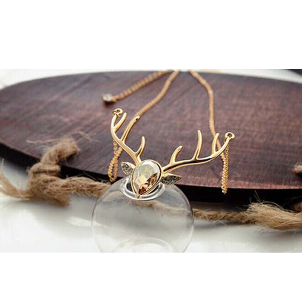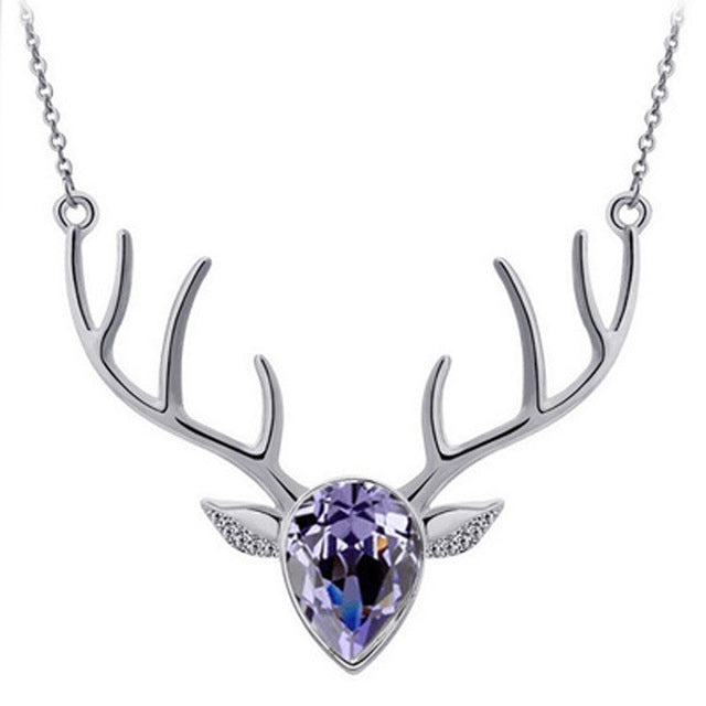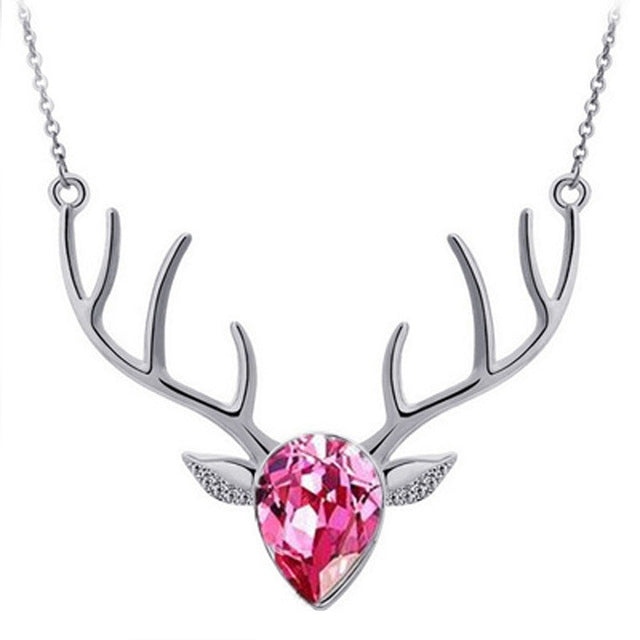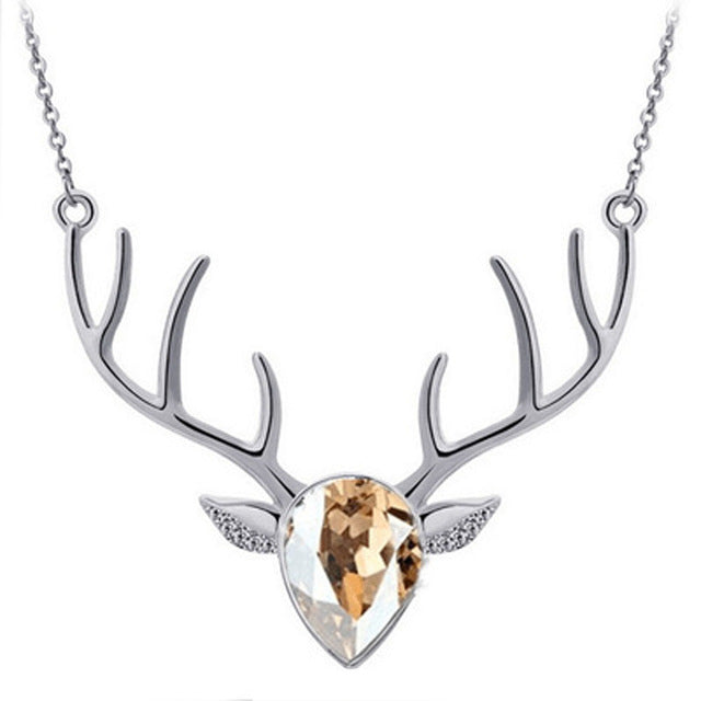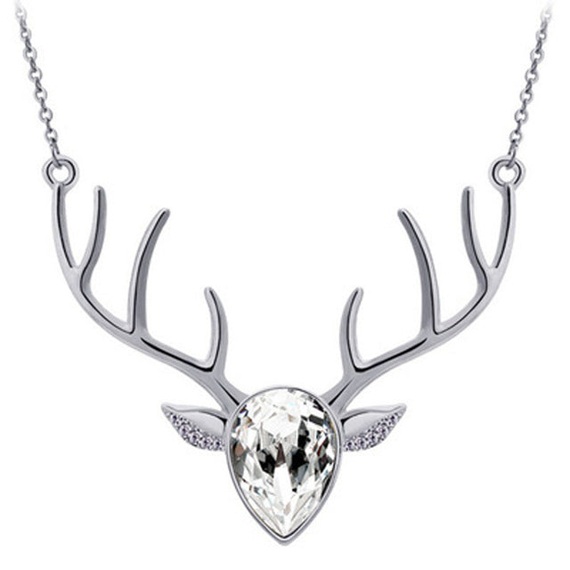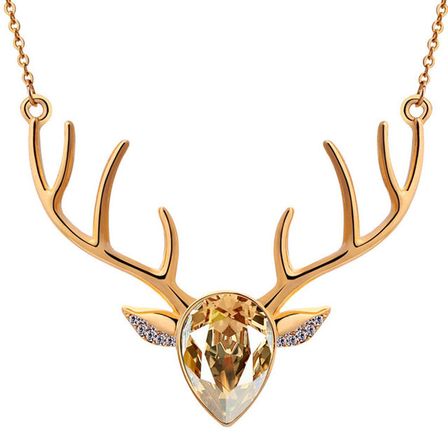 Rhinestone Crystal Deer Head Antler Pendant Necklace