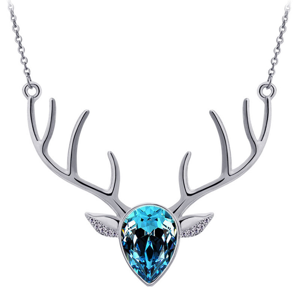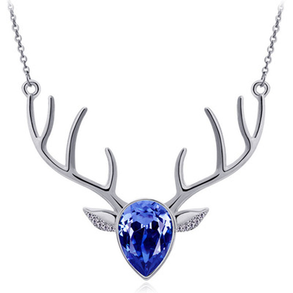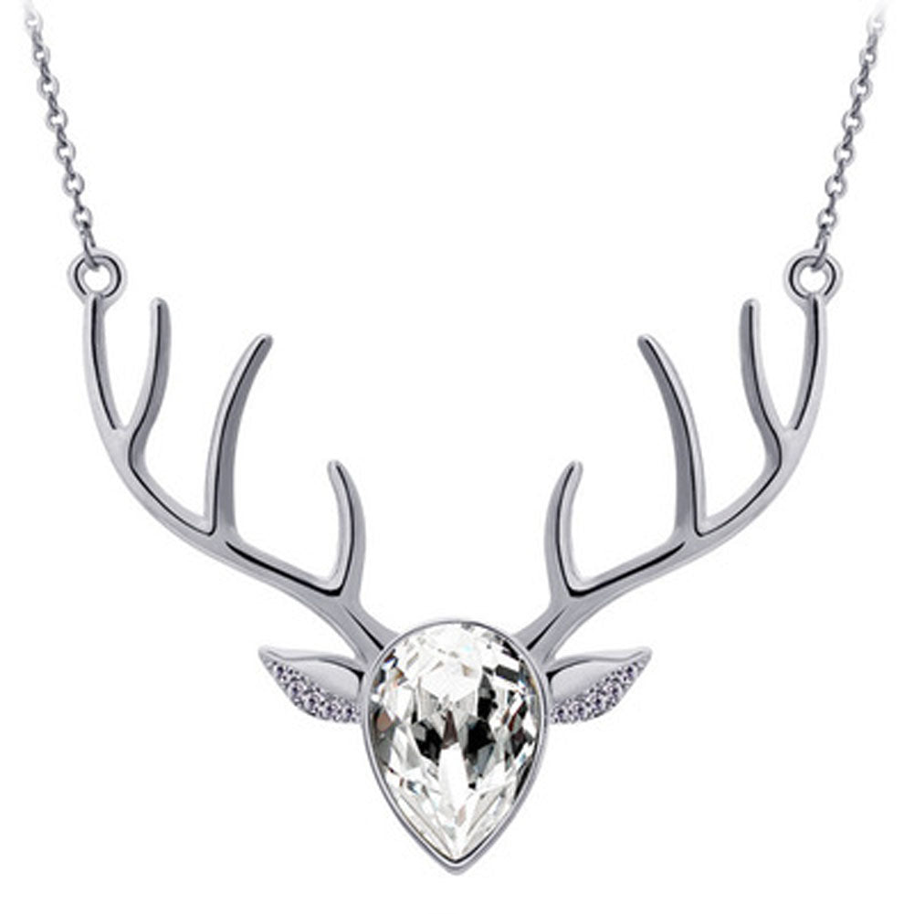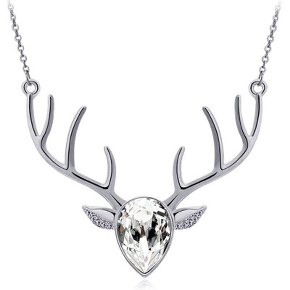 Rhinestone Crystal Deer Head Antler Pendant Necklace