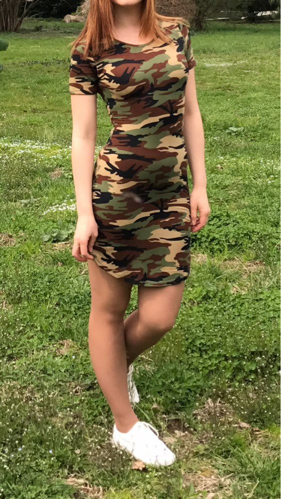 Super cute camo mini dress. Material is super soft and comfortable. Camo Style and Comfort. :)